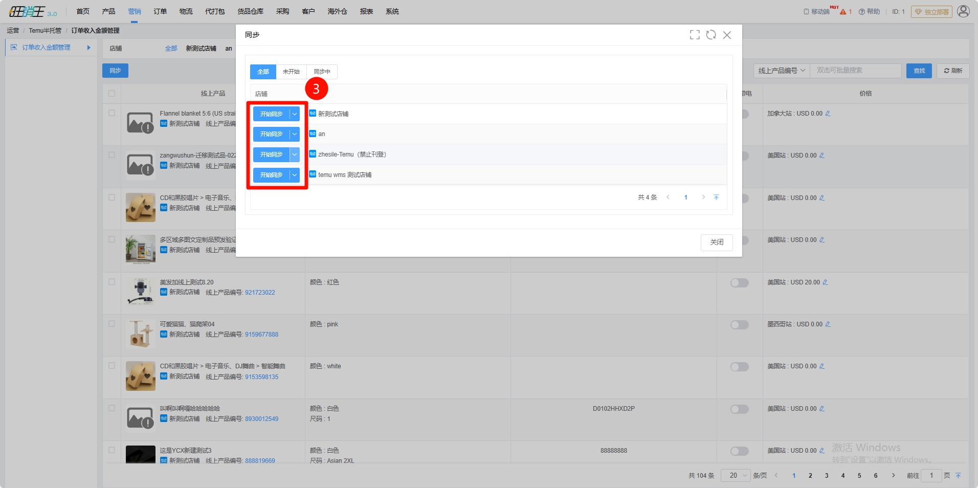 第三步:选择需要进行该操作的店铺 -> 点击开始同步