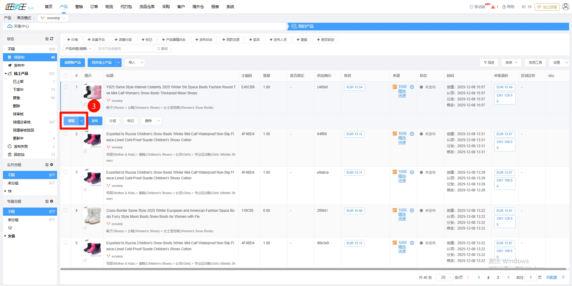 第三步:选择需要进行编辑的产品