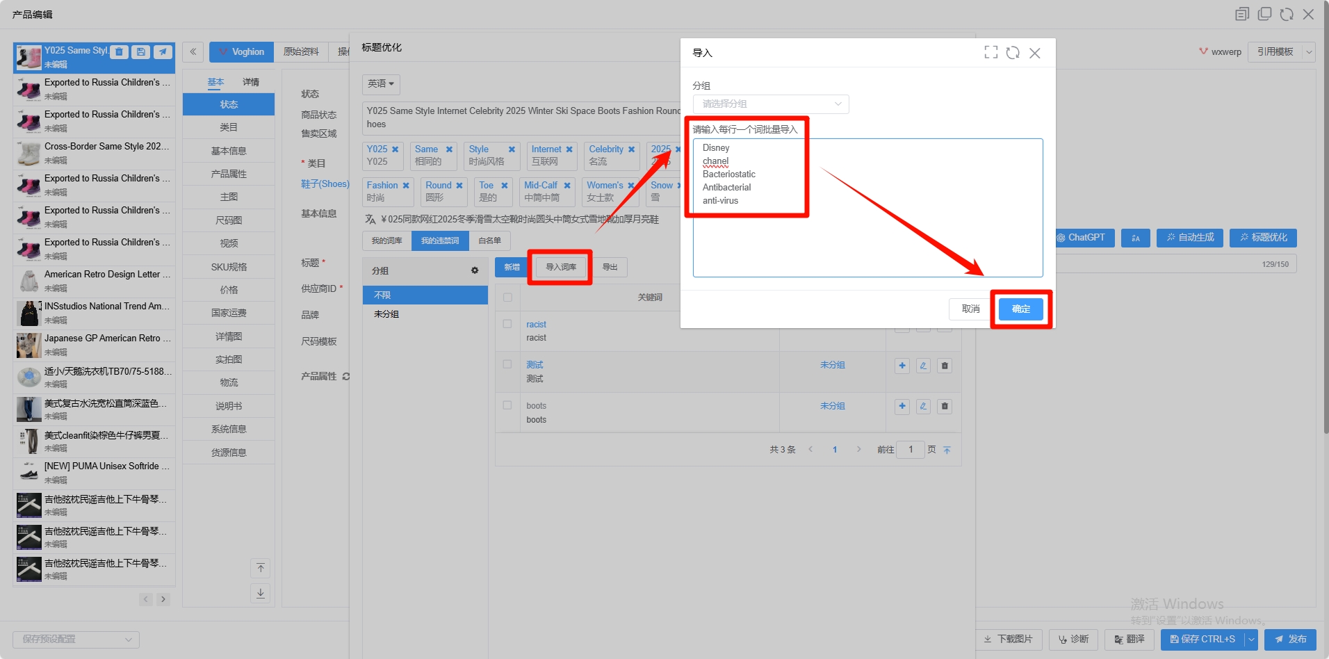 为了帮助各位商家在编辑产品时更好的规避平台的违禁词,以下是产品编辑中标题优化的违禁词功能的具体操作流程。