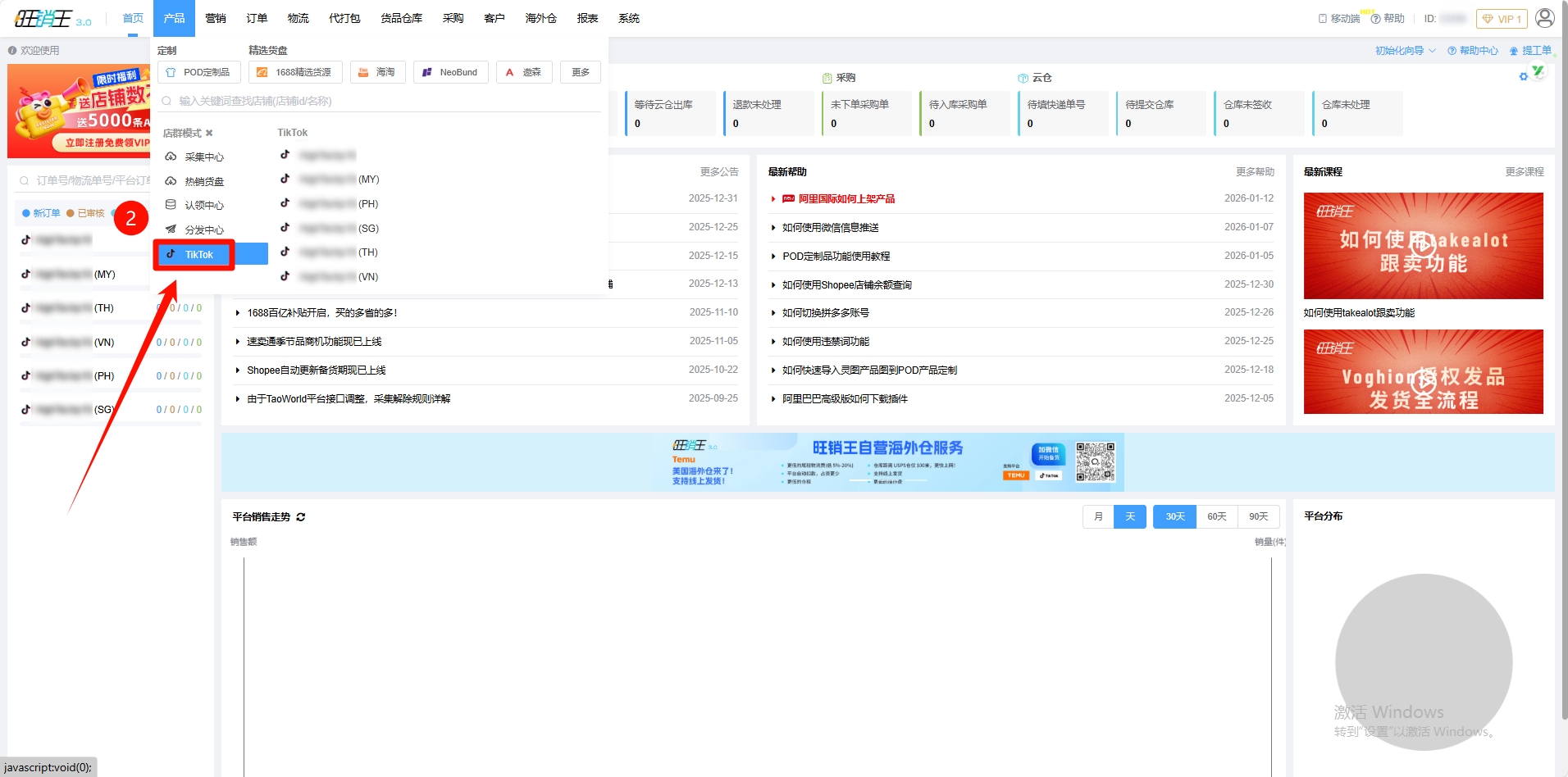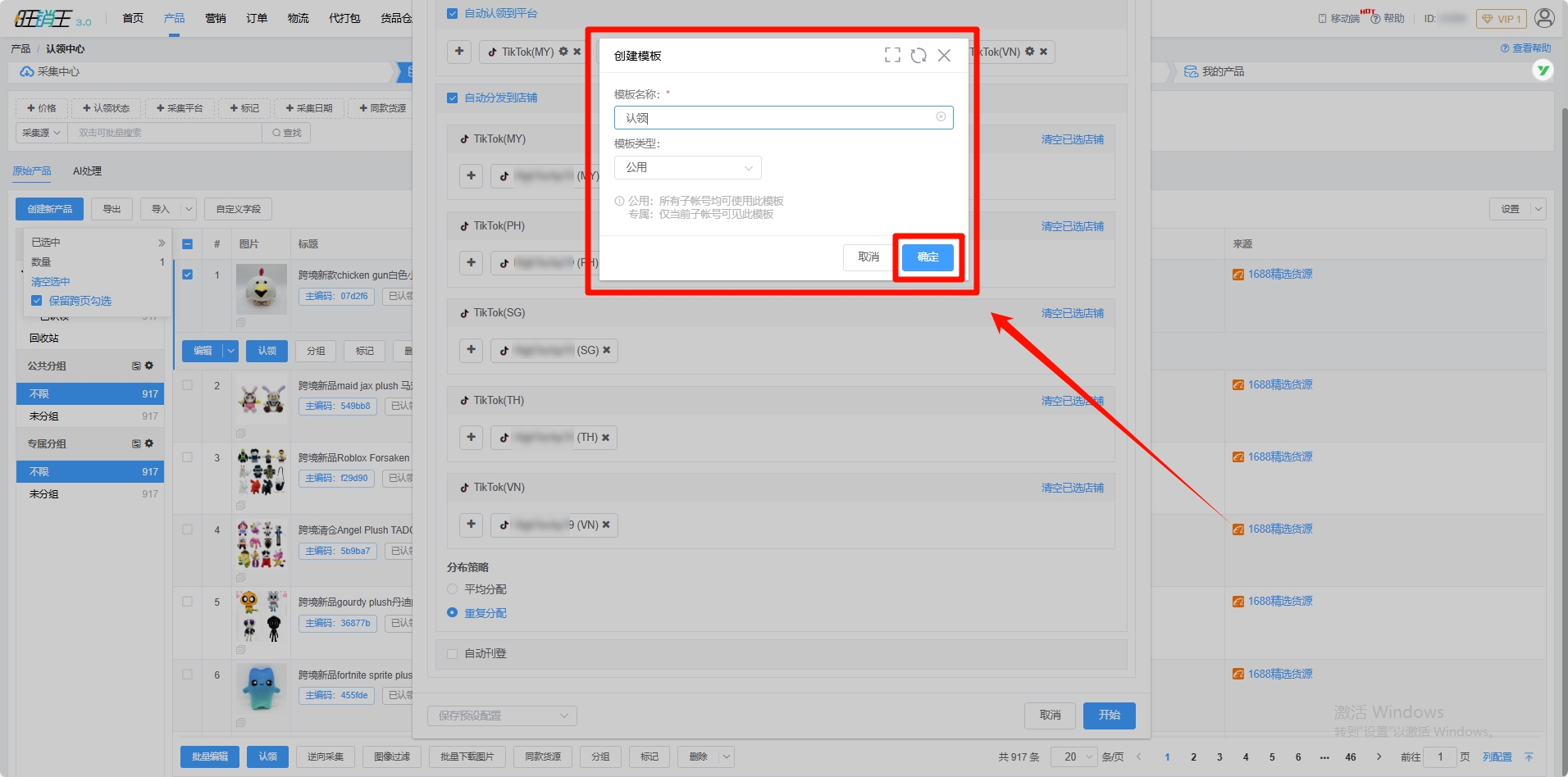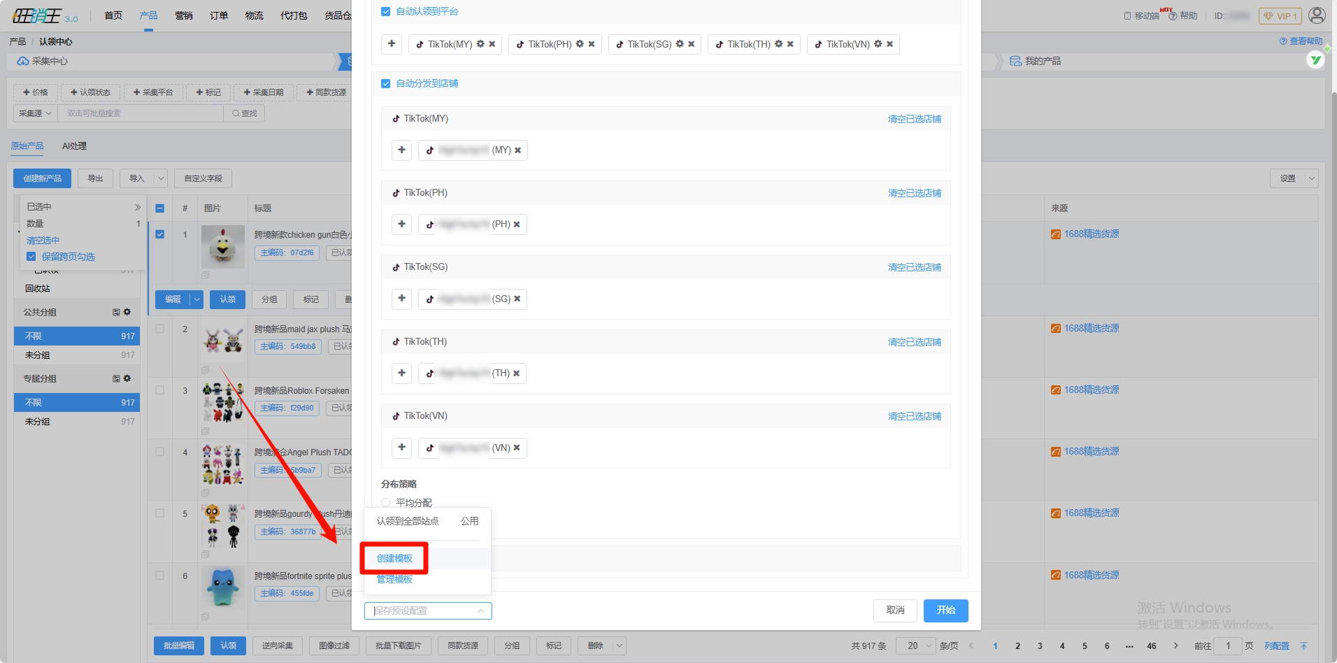 由于TikTok官方对于TikTok全球店的业务改革,导致以后将不能把产品认领至全球店,再统一分发至各个站点。旺销王ERP推荐店群模式的卖家根据下方的操作步骤进行上品。
