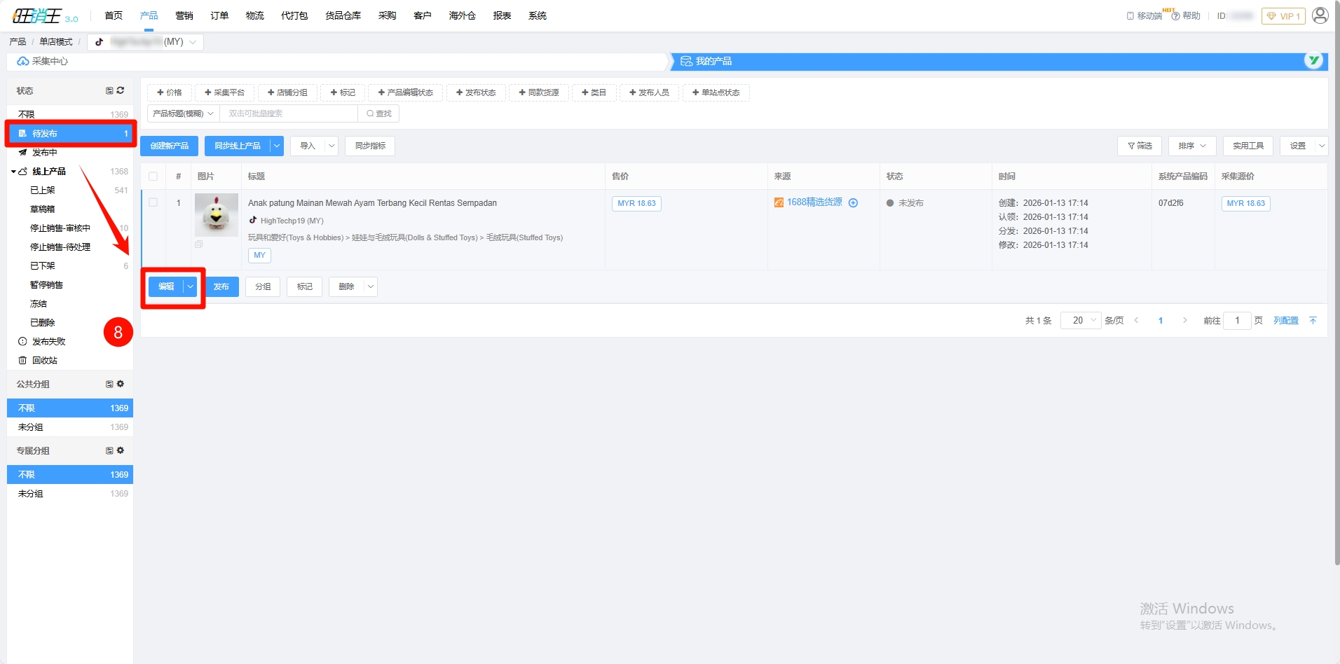 第八步:点击待发布 -> 点击编辑