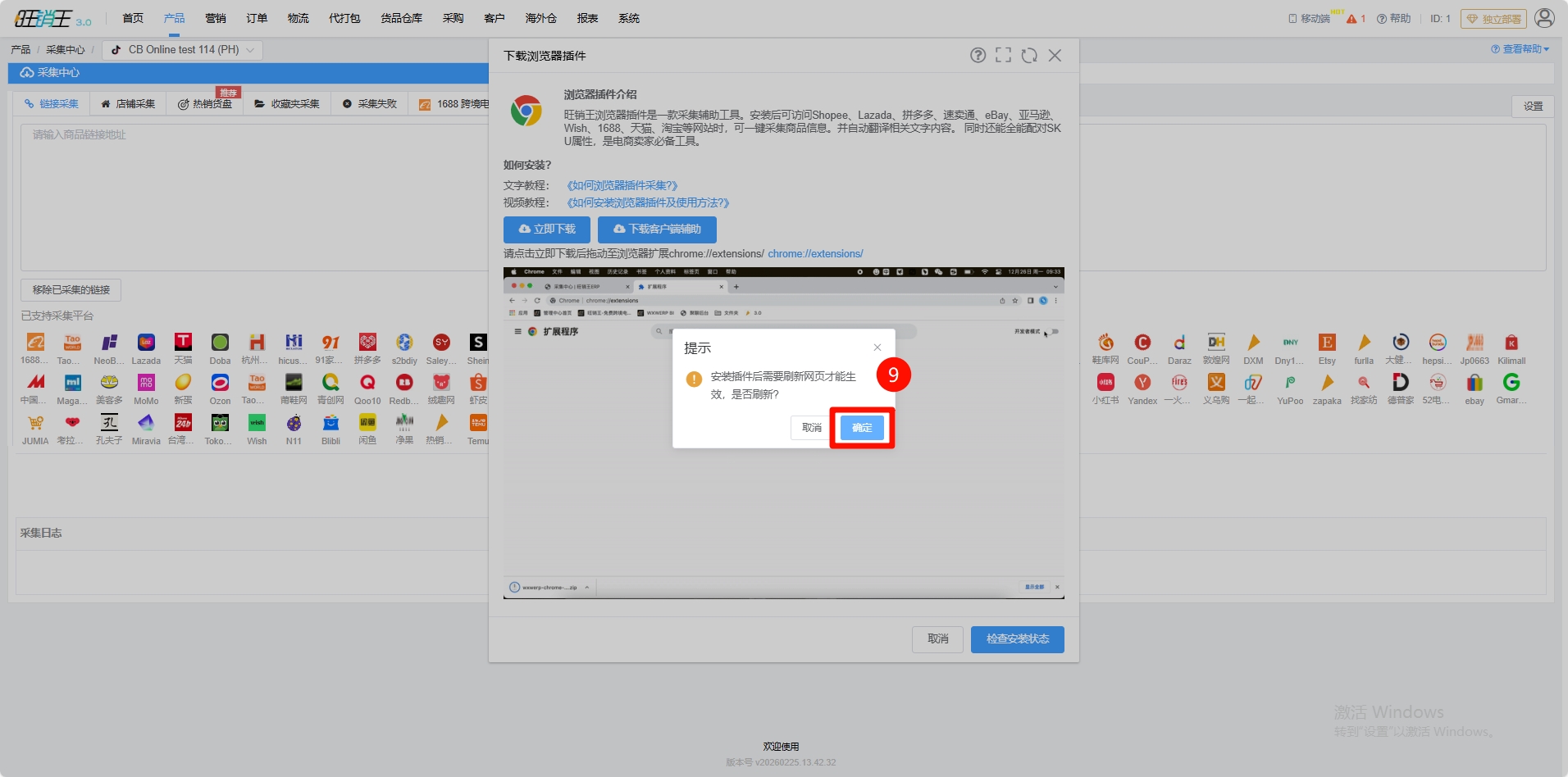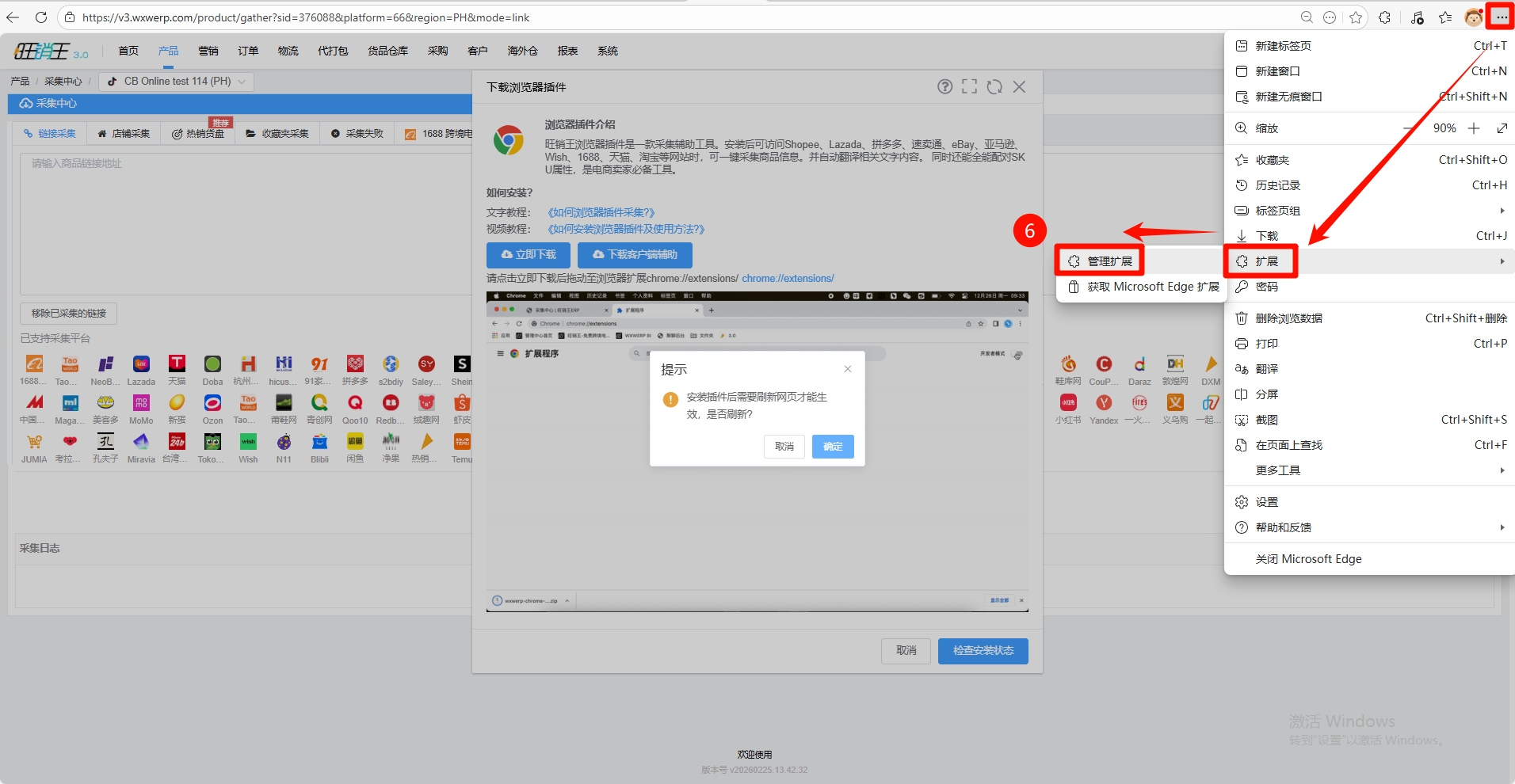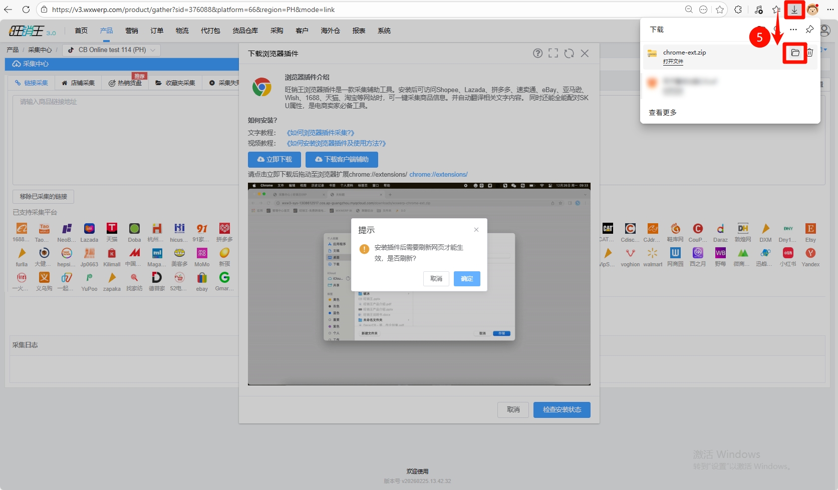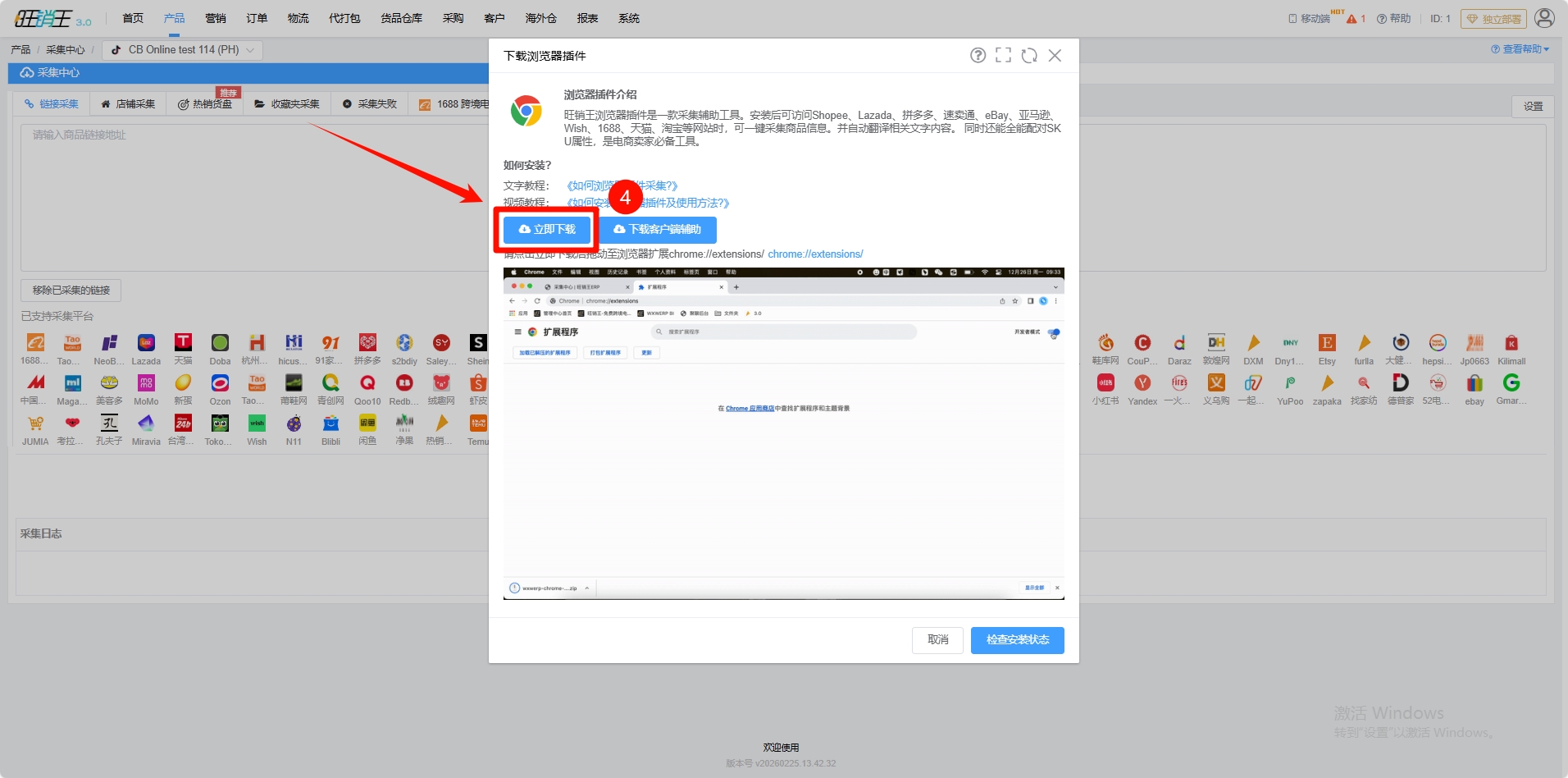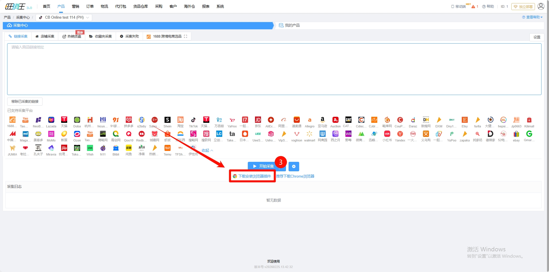 第二步:点击采集中心 (若您已经安装好了旺销王ERP插件可直接跳到第十步)