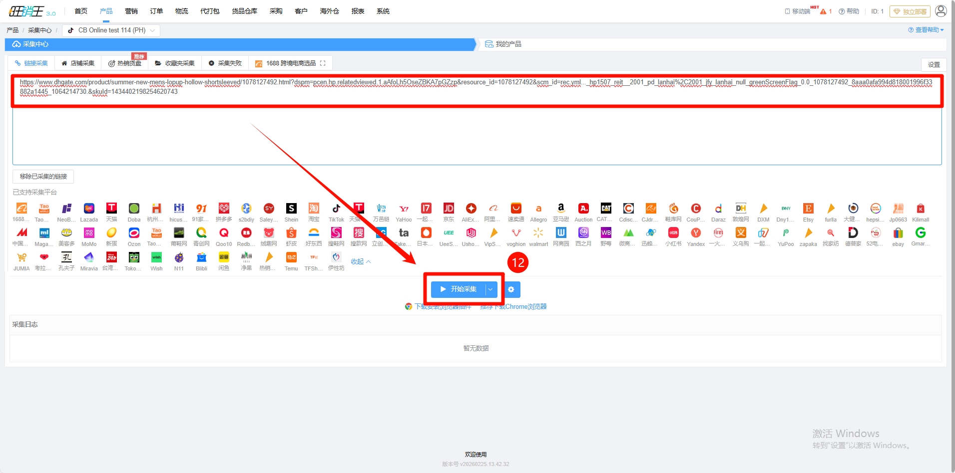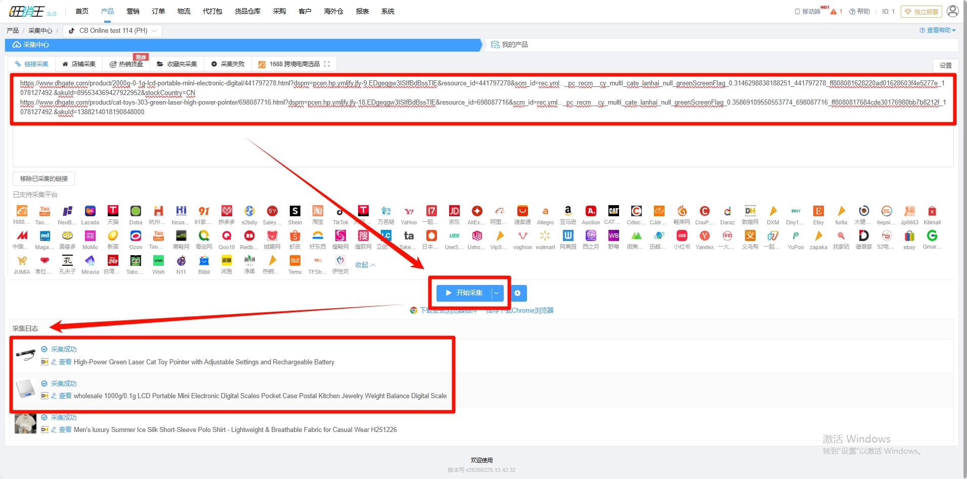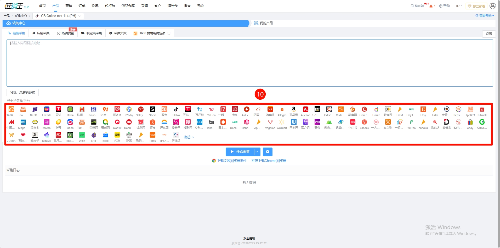 旺销王ERP也支持多链接同时采集,不同产品的产品链接注意换行,再点击开始采集即可