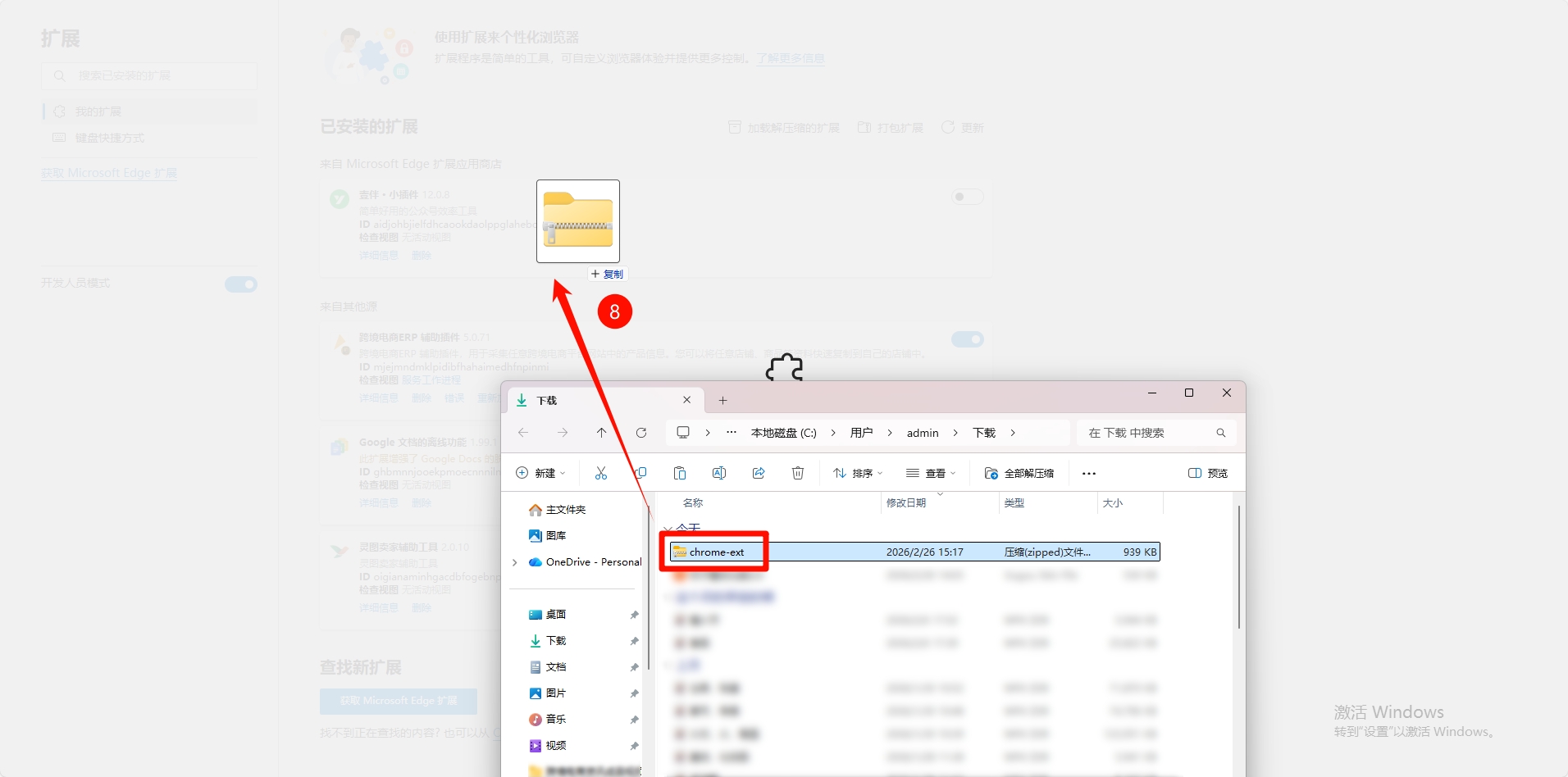 第六步:点击【设置及其他】 -> 找到拓展 -> 点击管理拓展