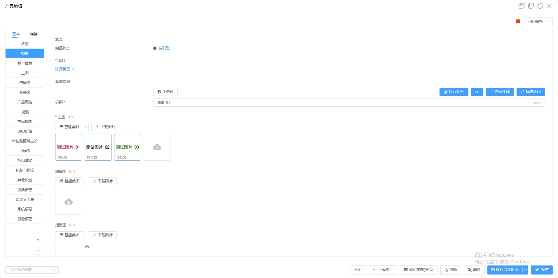 同步完商品后,点击此处创建产品,该功能将在编辑产品界面根据目前商机自动填写产品信息,各位商家可以自己补充其他商品信息,进行发布,从而节省时间。