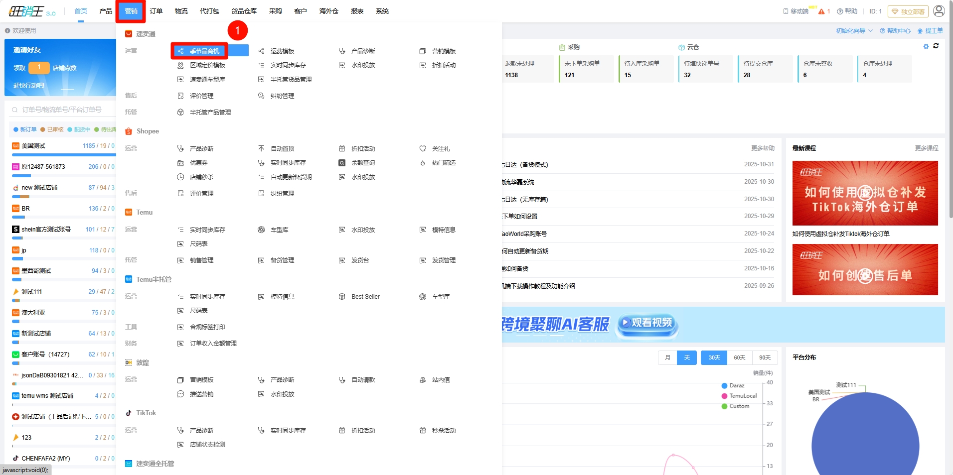 第一步:点击营销 -> 找到速卖通 -> 点击季节品商机