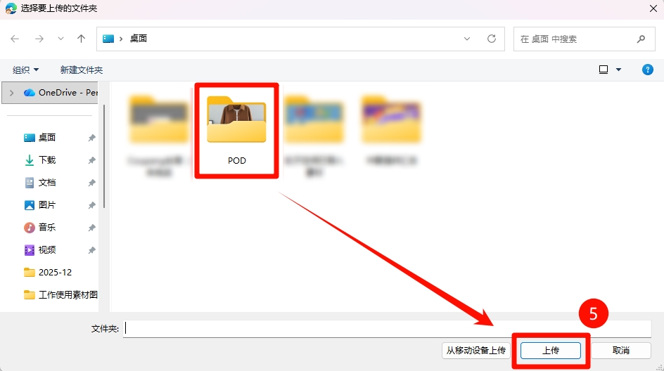 第五步:选择刚刚创建的POD文件夹 -> 点击上传