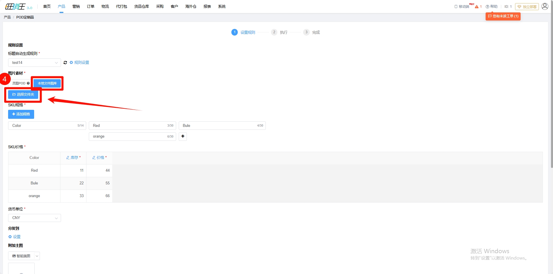 若您的pod产品有不同的SKU,各位商家也可以直接在上方新建的文件夹内再创建一个文件夹,并命名为SKU,在该文件夹内部放入不同SKU的商品图,系统就可以读取到文件夹内的信息,自动识别并创建该商品的不同SKU产品。