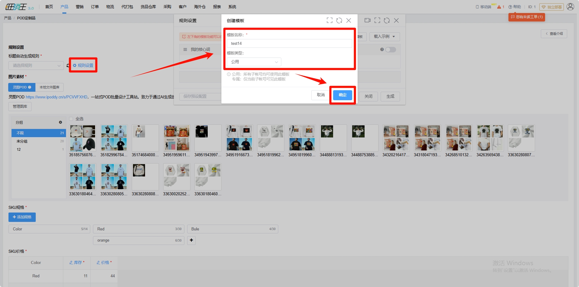 若各位商家还没有设置过标题生成规则的,可以点击规则设置 -> 创建模板 -> 填写模板名字 -> 点击确定