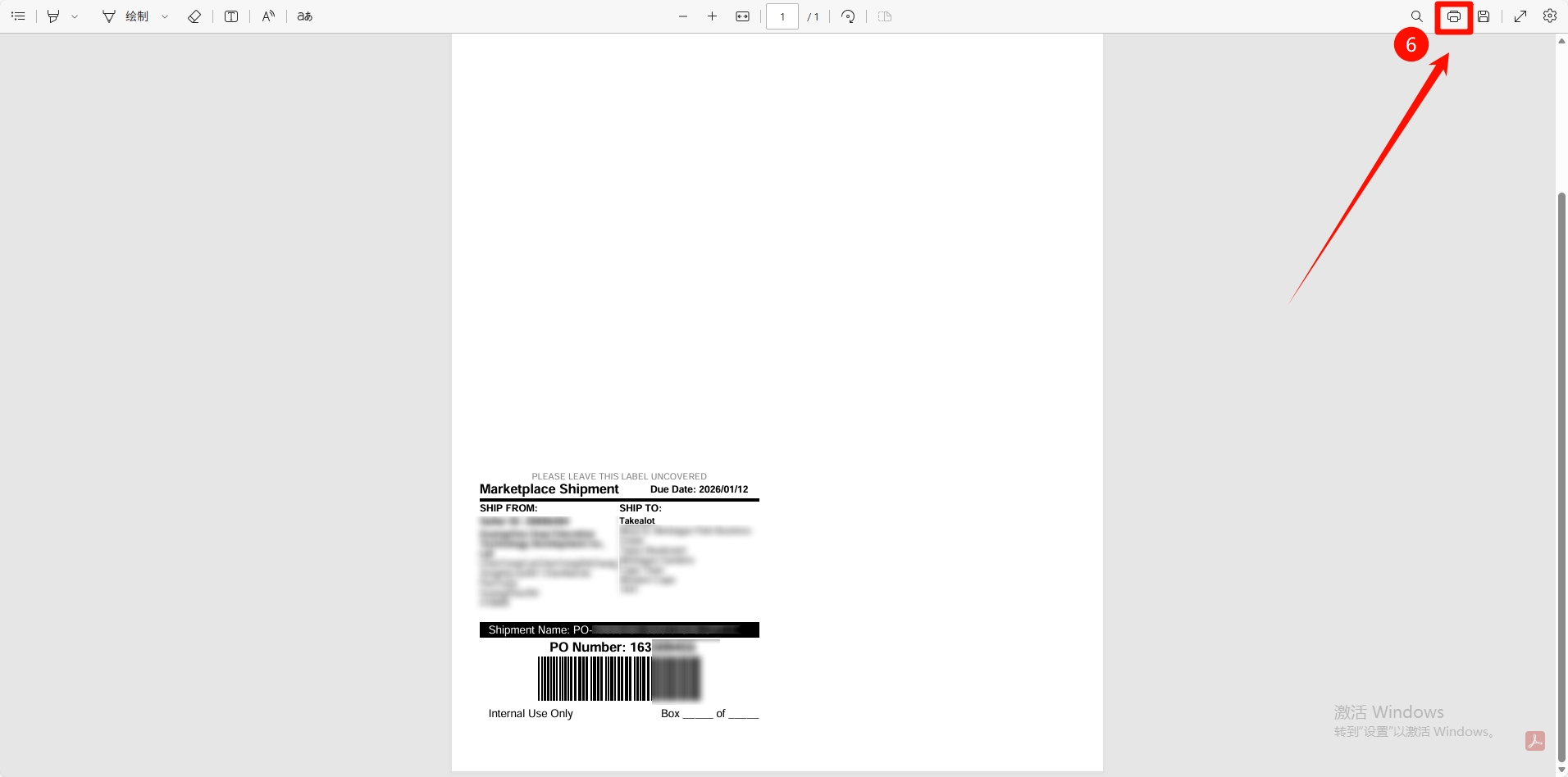 第六步:打开PDF -> 点击右上角打印