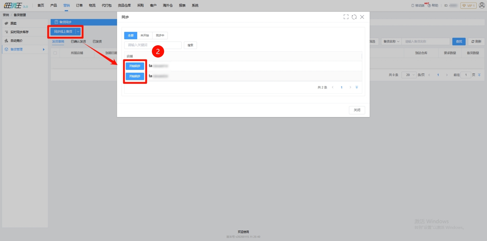 第二步:点击同步线上备货 -> 点击开始同步