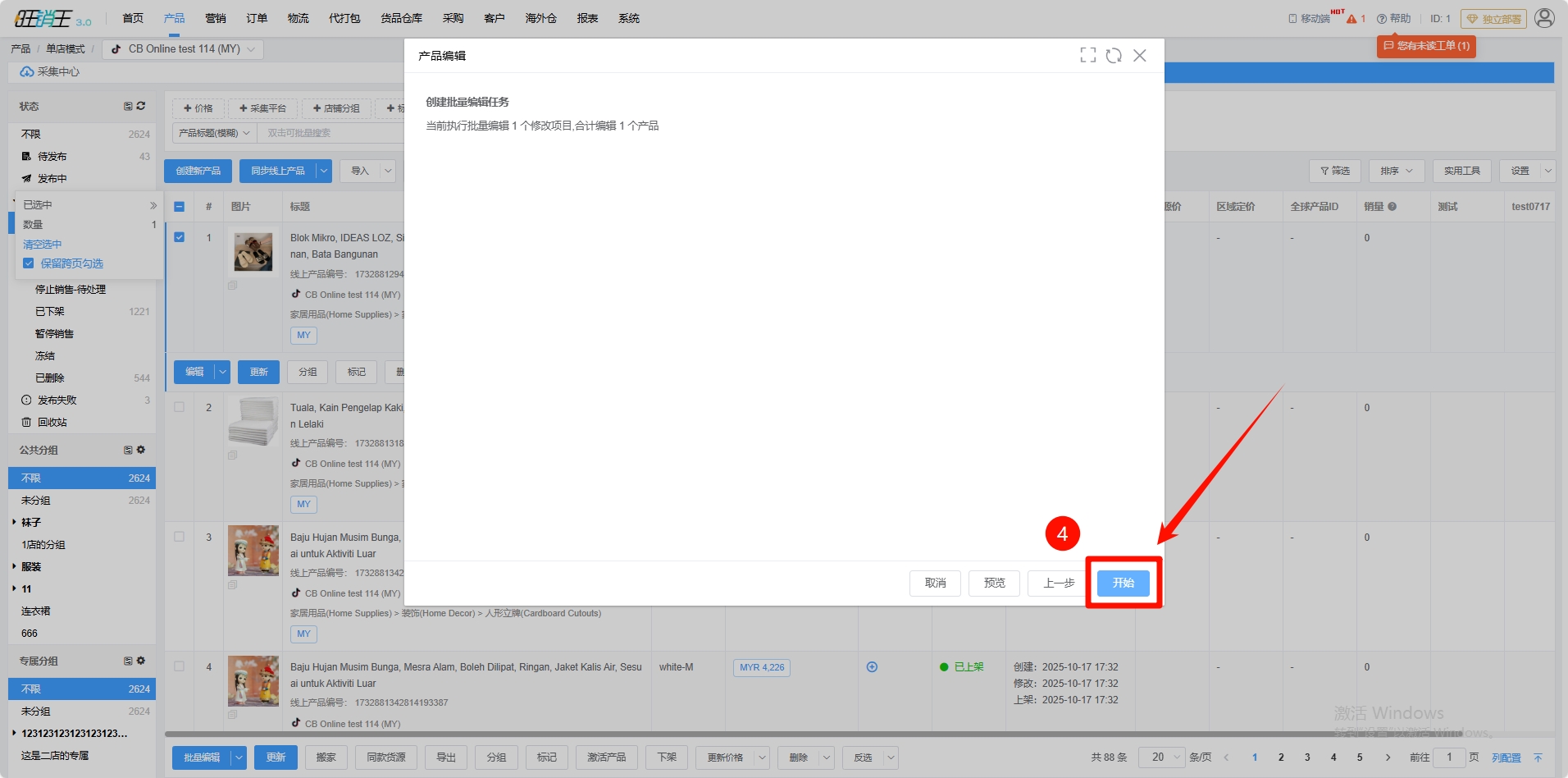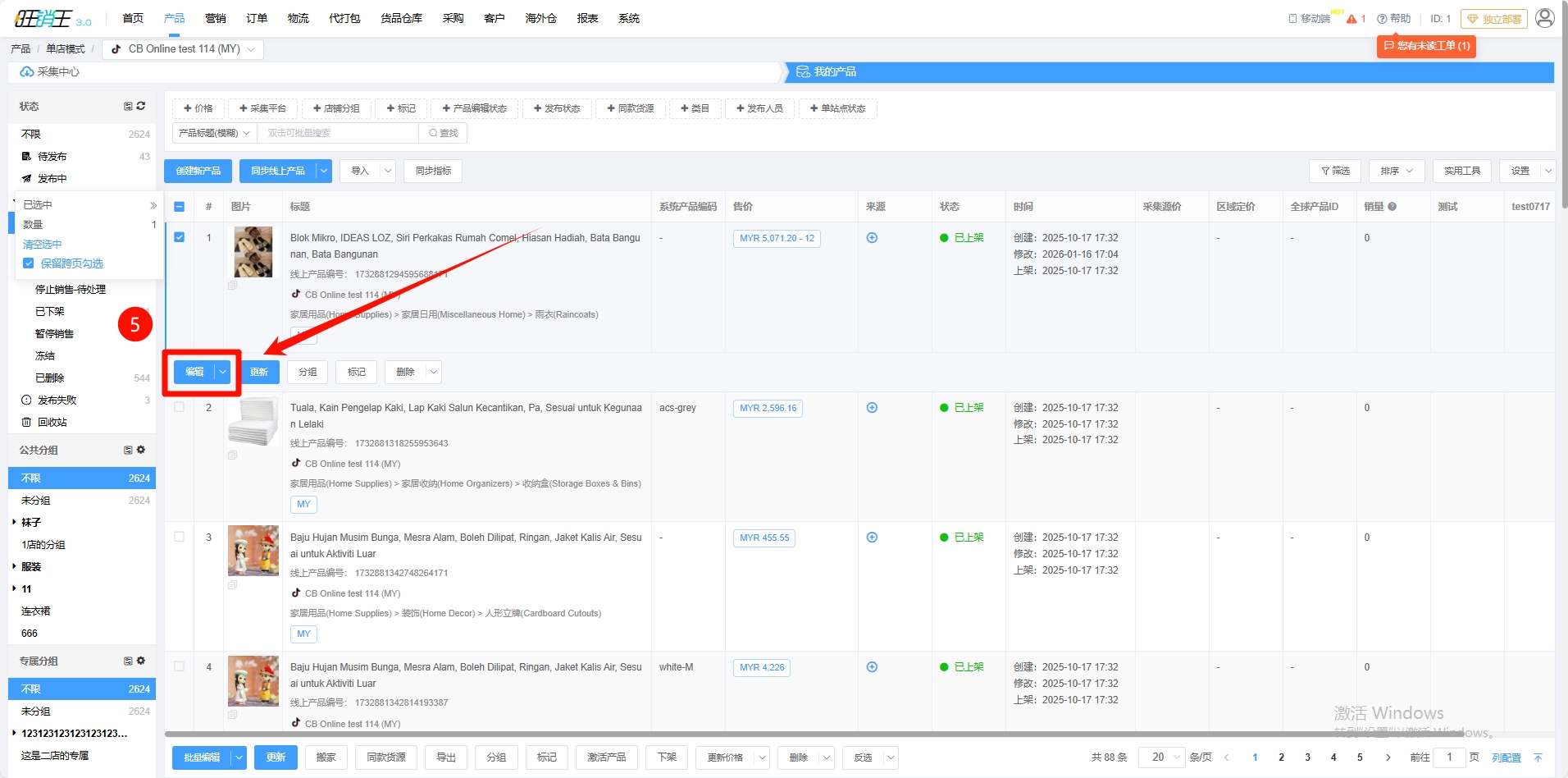 第二步:勾选需要拼图的产品 -> 点击批量编辑