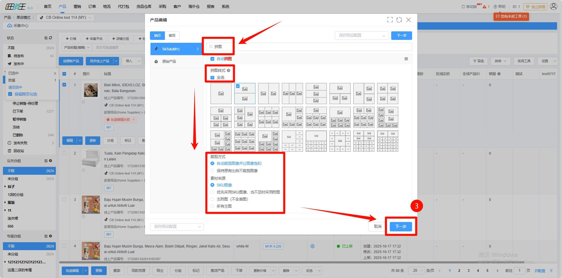 为了更好的服务各位商家对于产品图编辑的相关需求,旺销王ERP推出了自动拼图等功能,以下步骤将指引各位商家如何使用自动拼图功能。