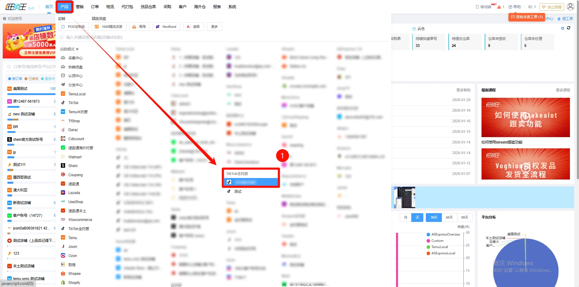 第一步:点击产品 -> 进入对应店铺