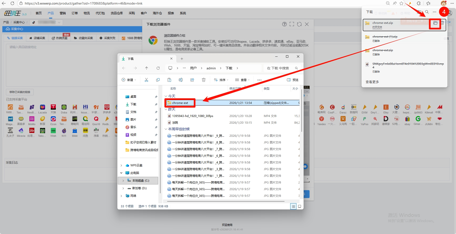 第四步:在下载中打开下载的插件所在的文件夹