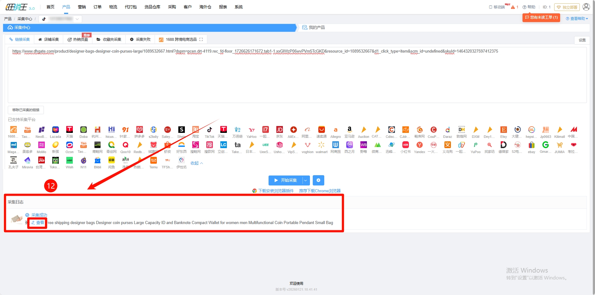 第十步:选择需要进行采集刊登的产品 -> 复制对应产品链接