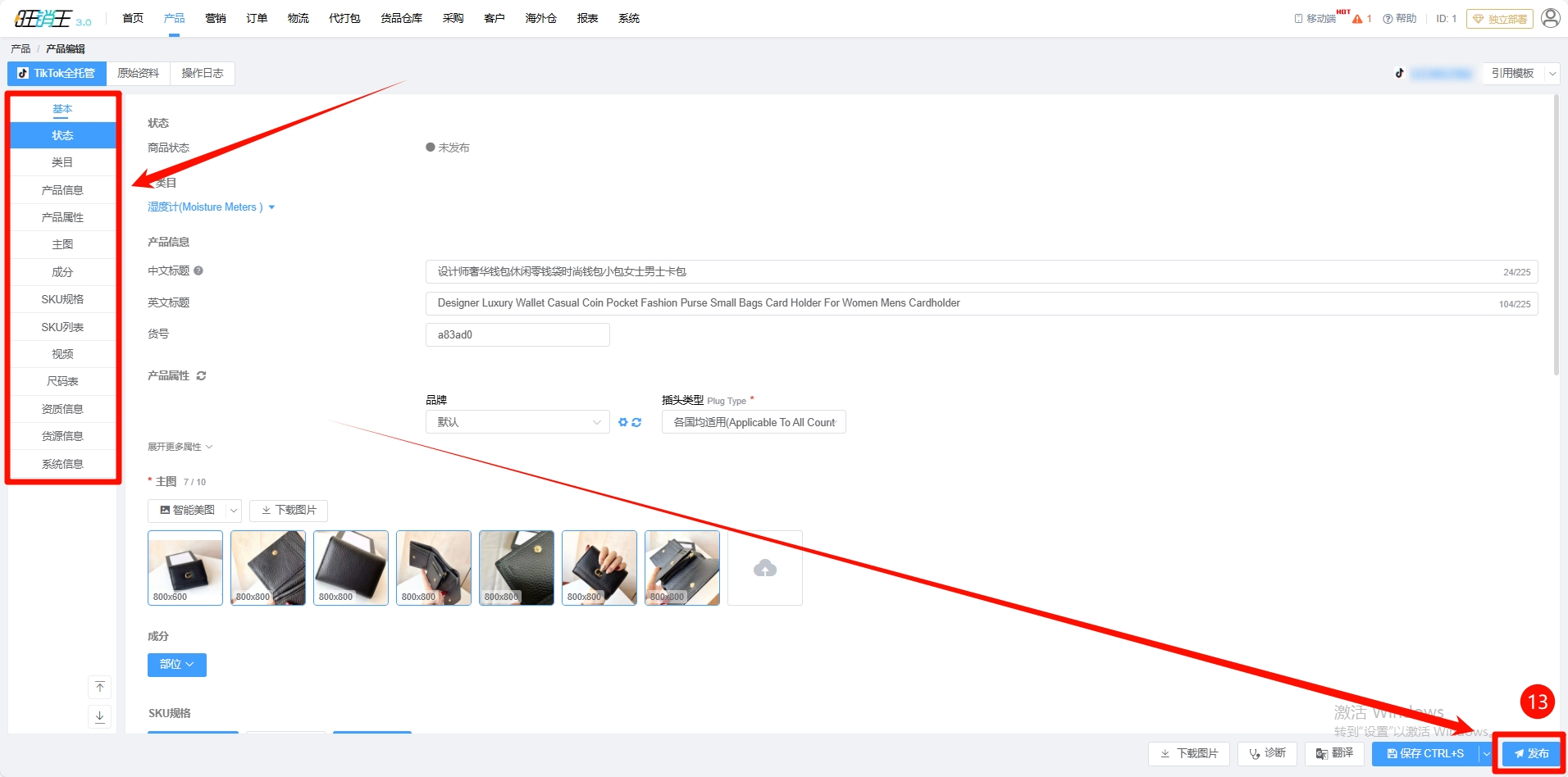 第十三步:编辑完产品后 -> 点击右下角发布