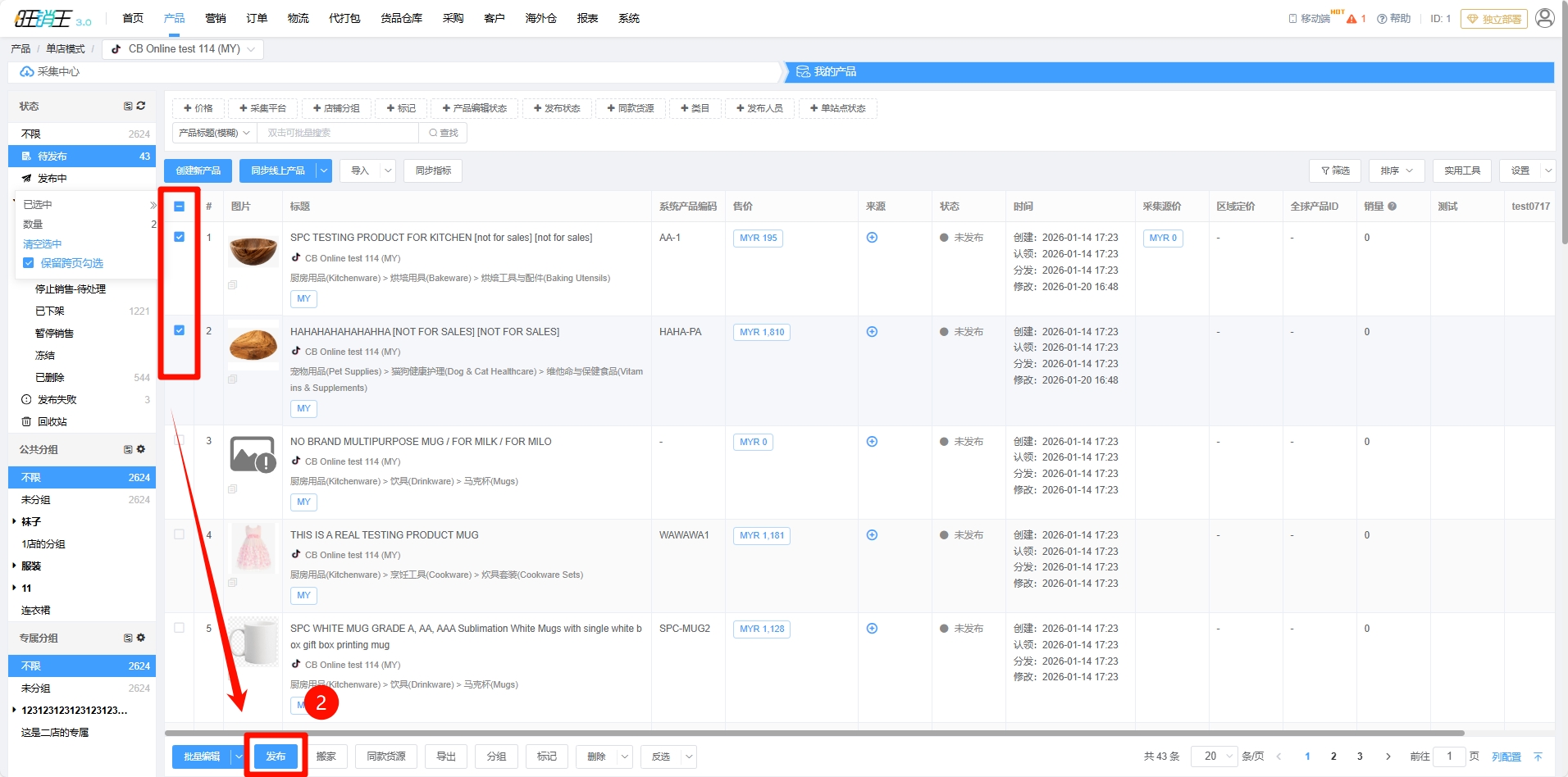 第二步:勾选需要进行发布的产品 -> 点击发布