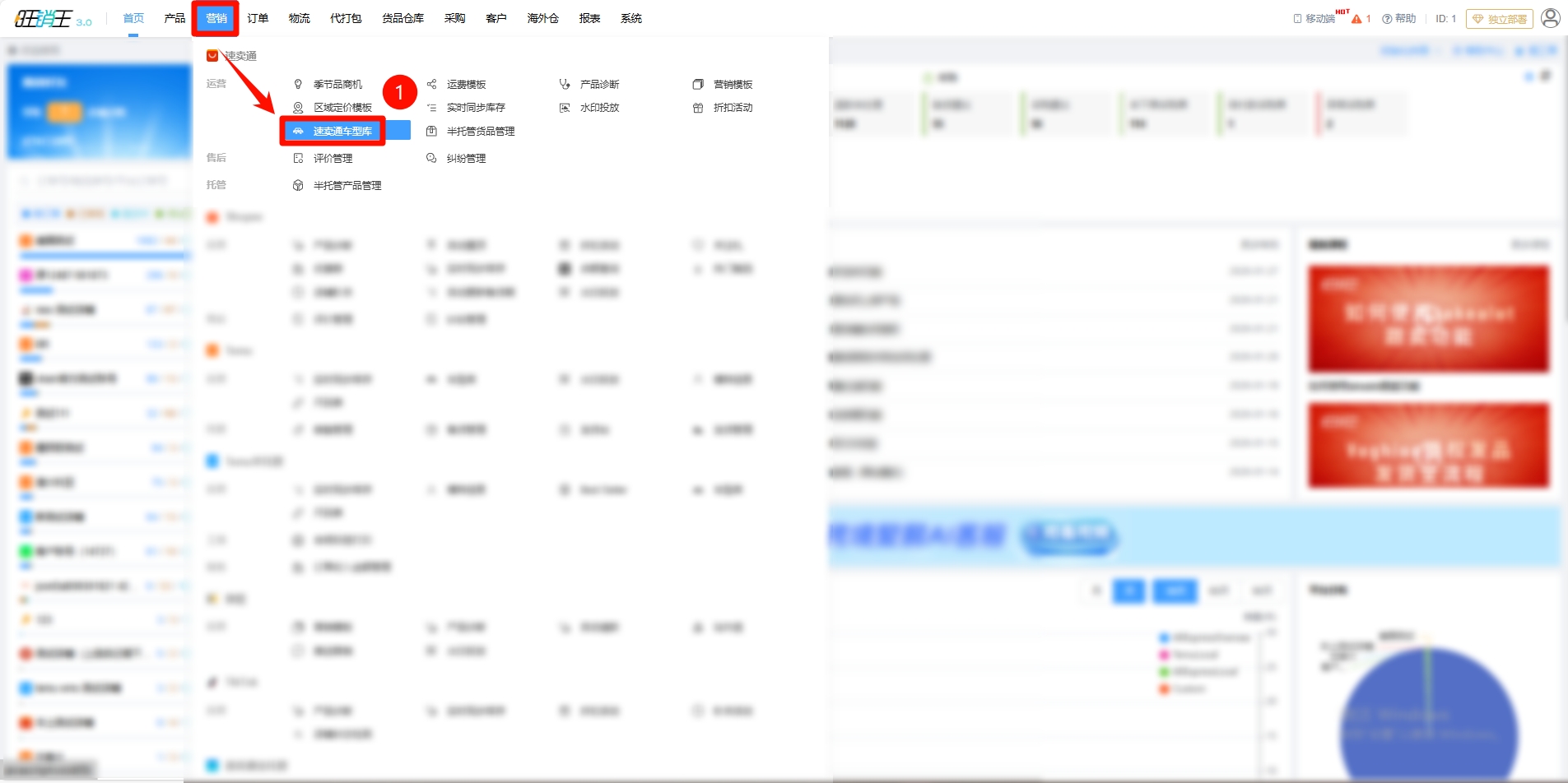 第一步:点击营销 -> 进入速卖通车型库