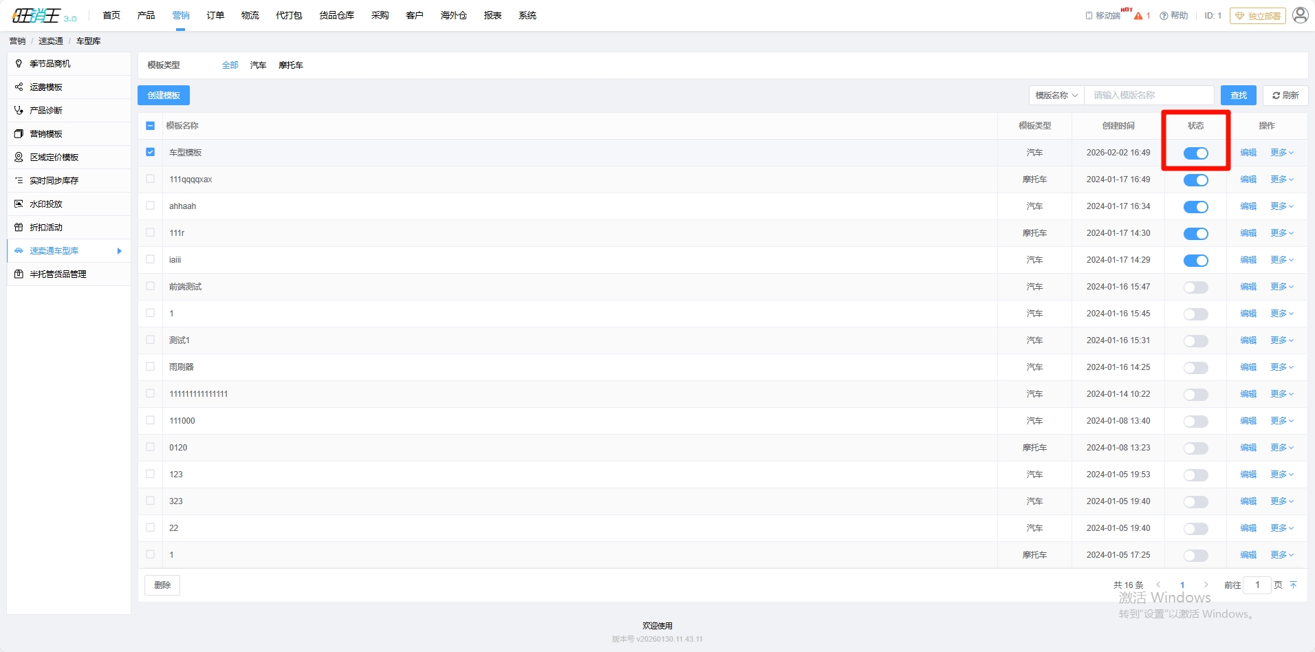 各位商家将该模板的状态开启,即可正常使用了。
